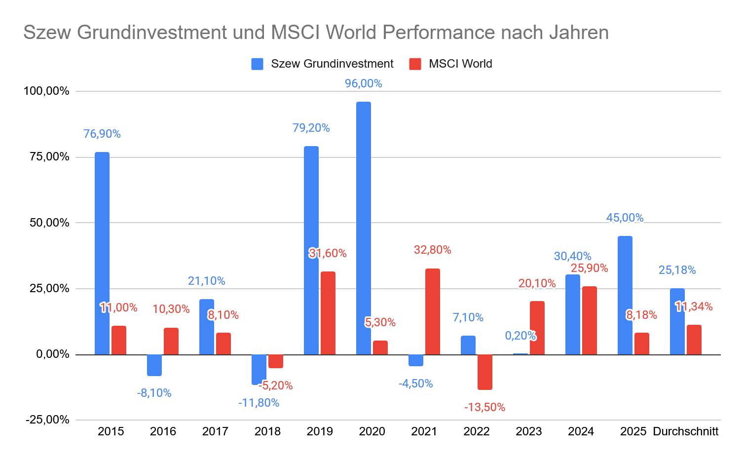 Seit dieser Änderung sind zwar erst zwei Jahre vergangen, aber die Ergebnisse zeigen bislang genau den gewünschten Effekt. Mit einer Rendite von +30,4% in 2024 und +45% in 2025 lag die Performance sogar etwas über der bisher durchschnittlichen Rendite und der maximale Drawdown von -17,9% in 2024 und -15,7% in 2025 in einem für mich absolut tolerablen Bereich.